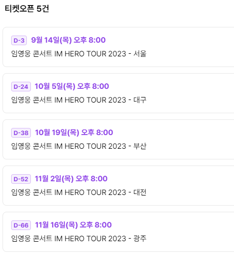 티켓 오픈: 2023년 9월 14일(목) 저녁 8시